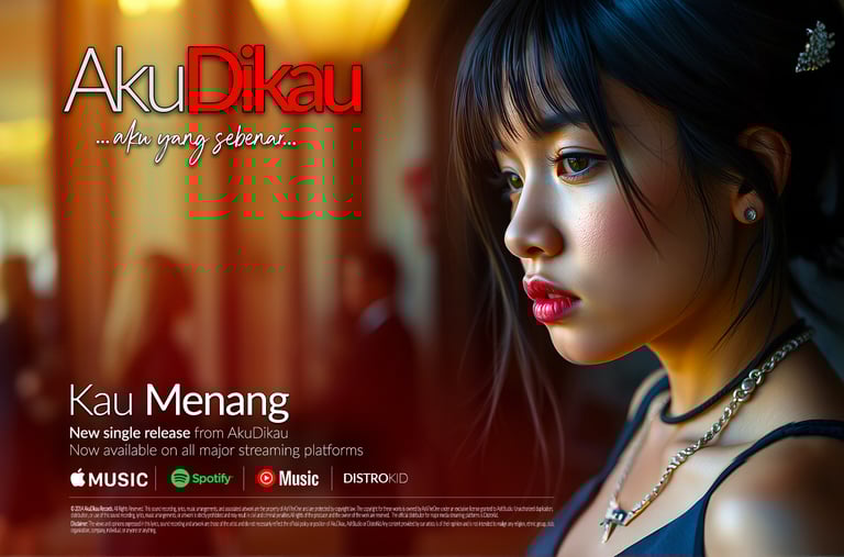 We are the creative force behind AkuDikau. With a deep-rooted passion for storytelling through music, we specialize in crafting lyrics that connect, move, and inspire. Our creative reach spans R&B, soul, pop, hip-hop, rock, jazz, K-pop, and more delivered in English, Malay, and Korean. We don’t just write lyrics, we shape raw emotion into unforgettable sound.